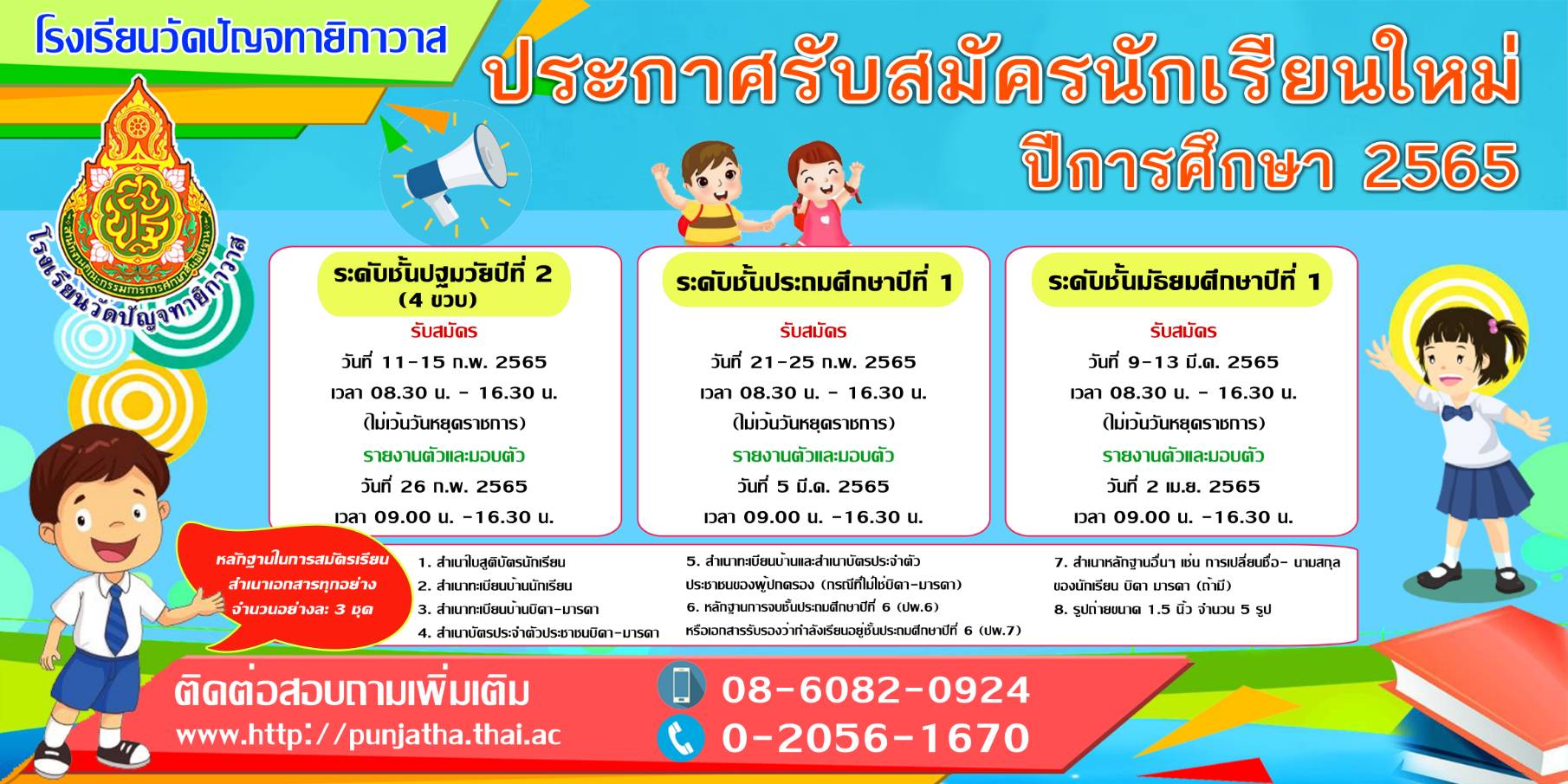 โรงเรียนวัดปัญจทายิกาวาสเปิดรับสมัครนักเรียนใหม่ ปะจำปีการศึกษา 2565