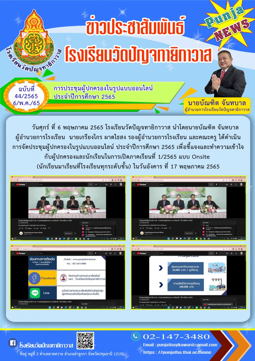การประชุมผู้ปกครอง ในรูปแบบออนไลน์ ประจำปีการศึกษา 2565