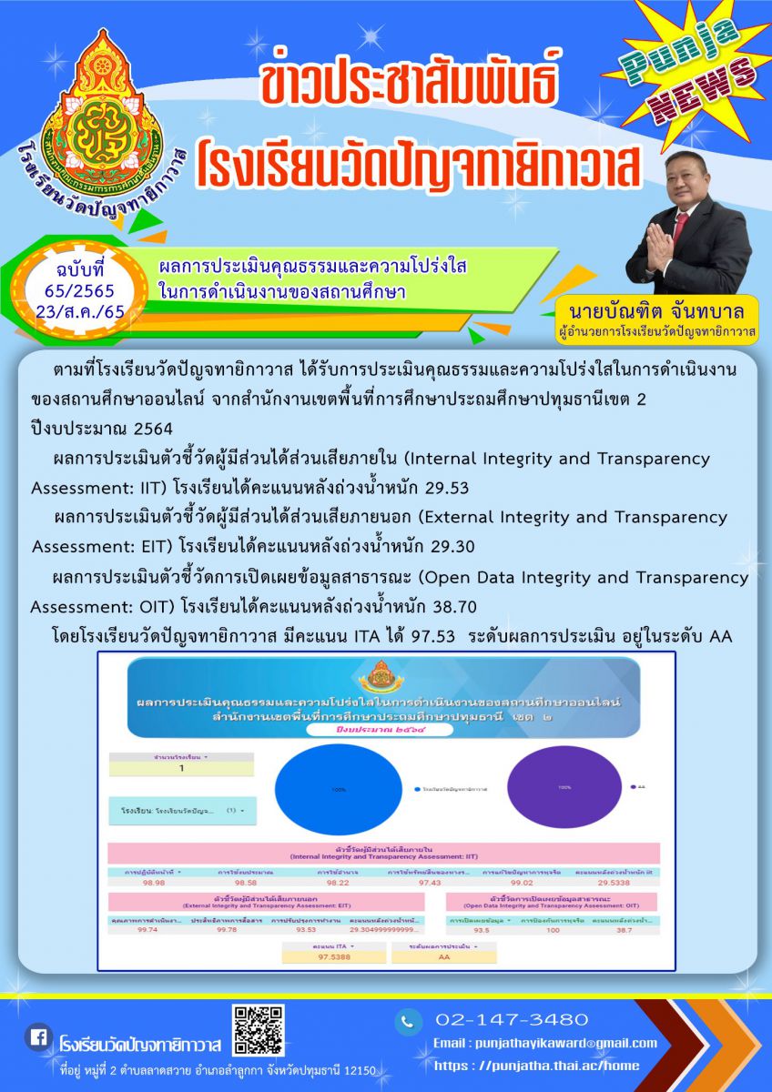 ผลการประเมินคุณธรรมและความโปร่งใสในการดำเนินงานของสถานศึกษา