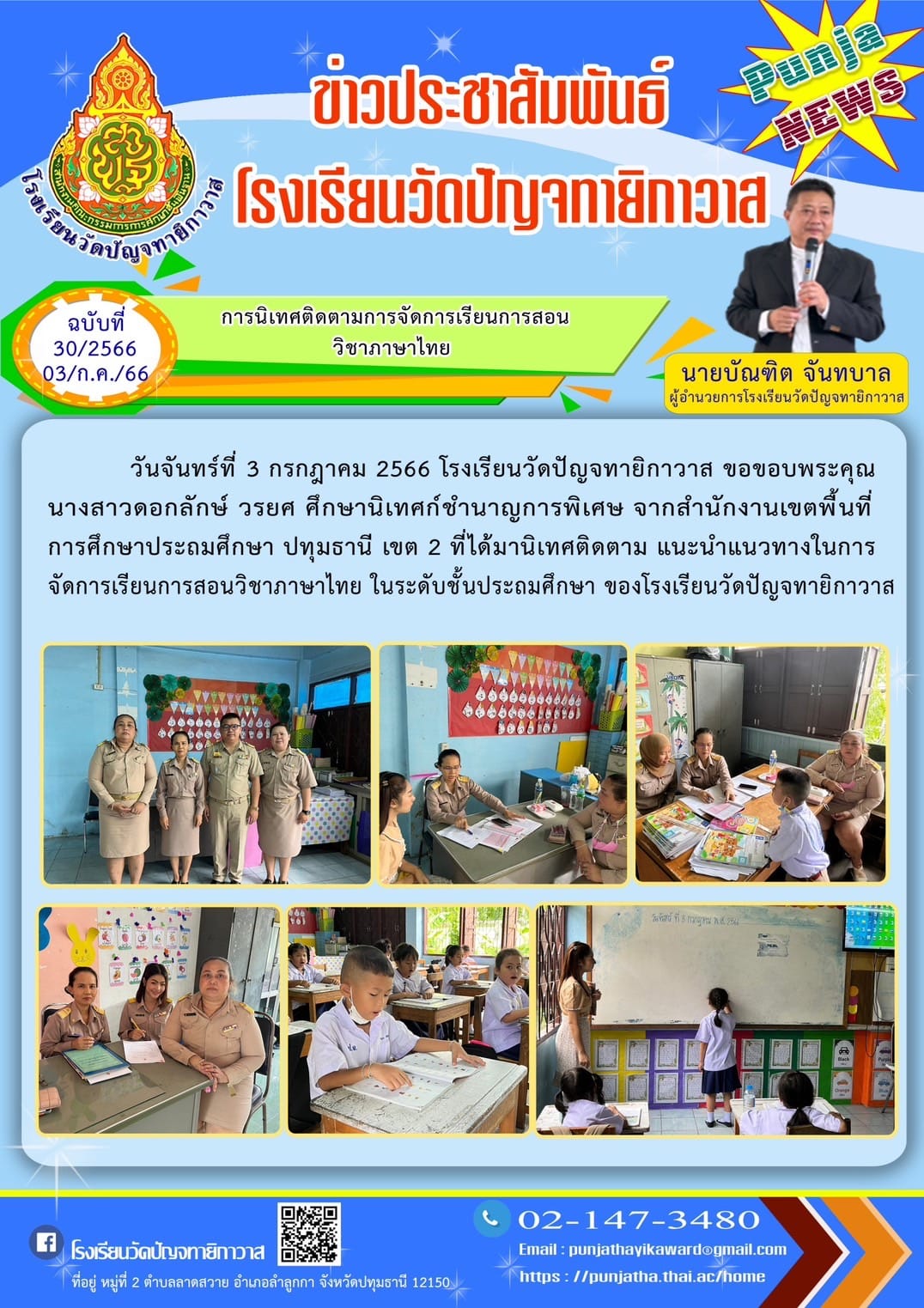 การนิเทศติดตามการจัดการเรียนการสอนวิชาภาษาไทย