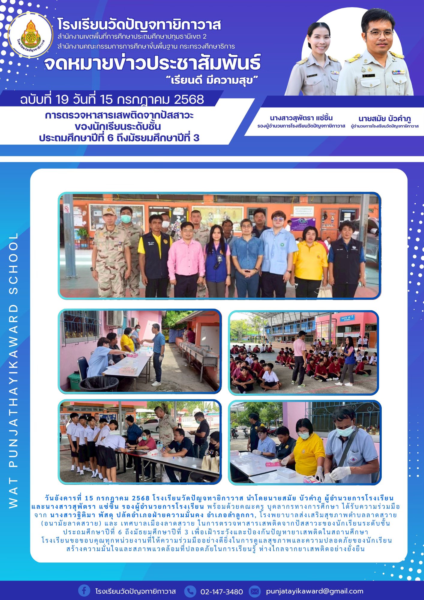 การตรวจหาสารเสพติดจากปัสสาวะของนักเรียนระดับชั้น ประถมศึกษาปีที่ 6 ถึงมัธยมศึกษาปีที่ 3