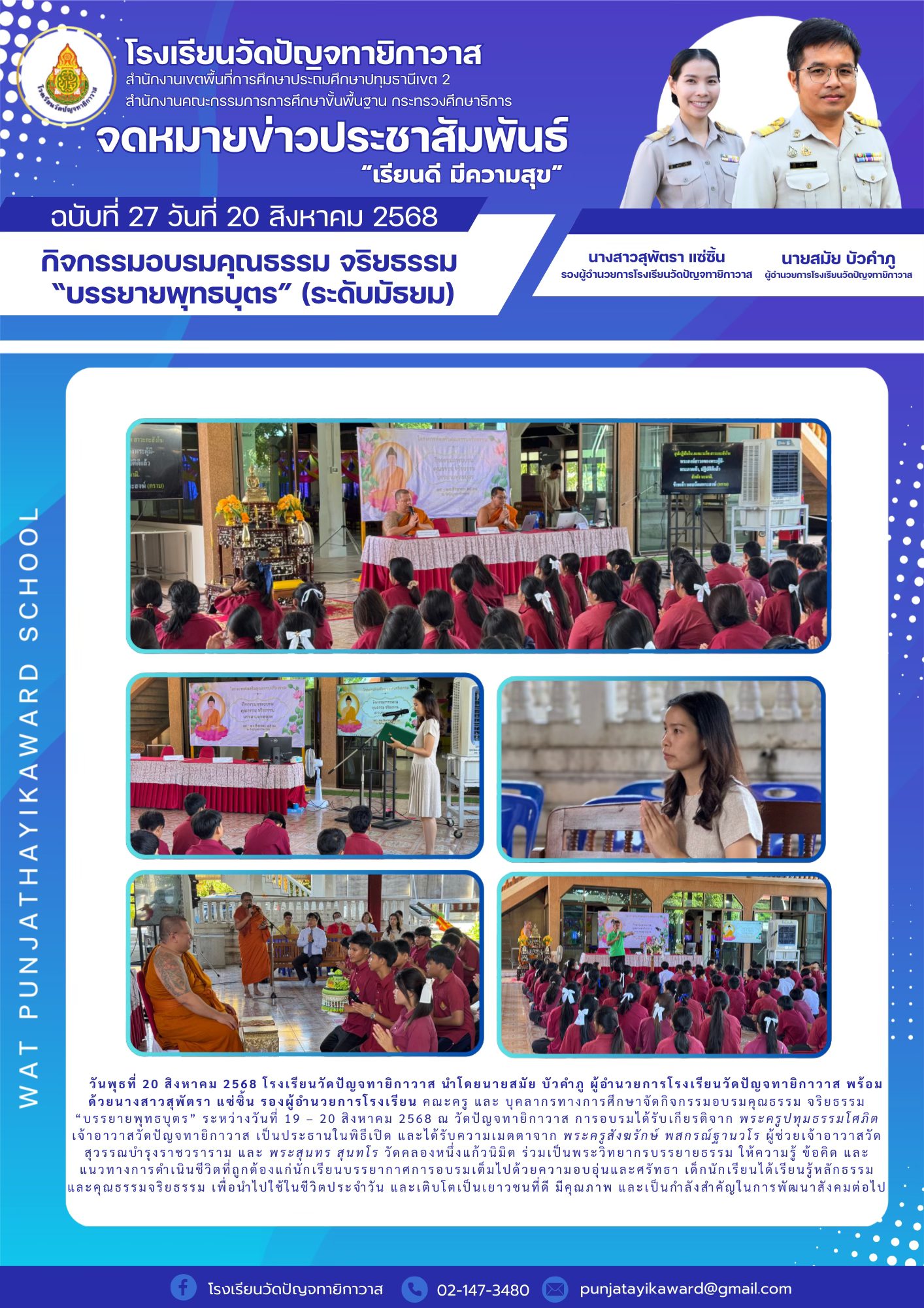 กิจกรรมอบรมคุณธรรม จริยธรรม ?บรรยายพุทธบุตร? (มัธยม)