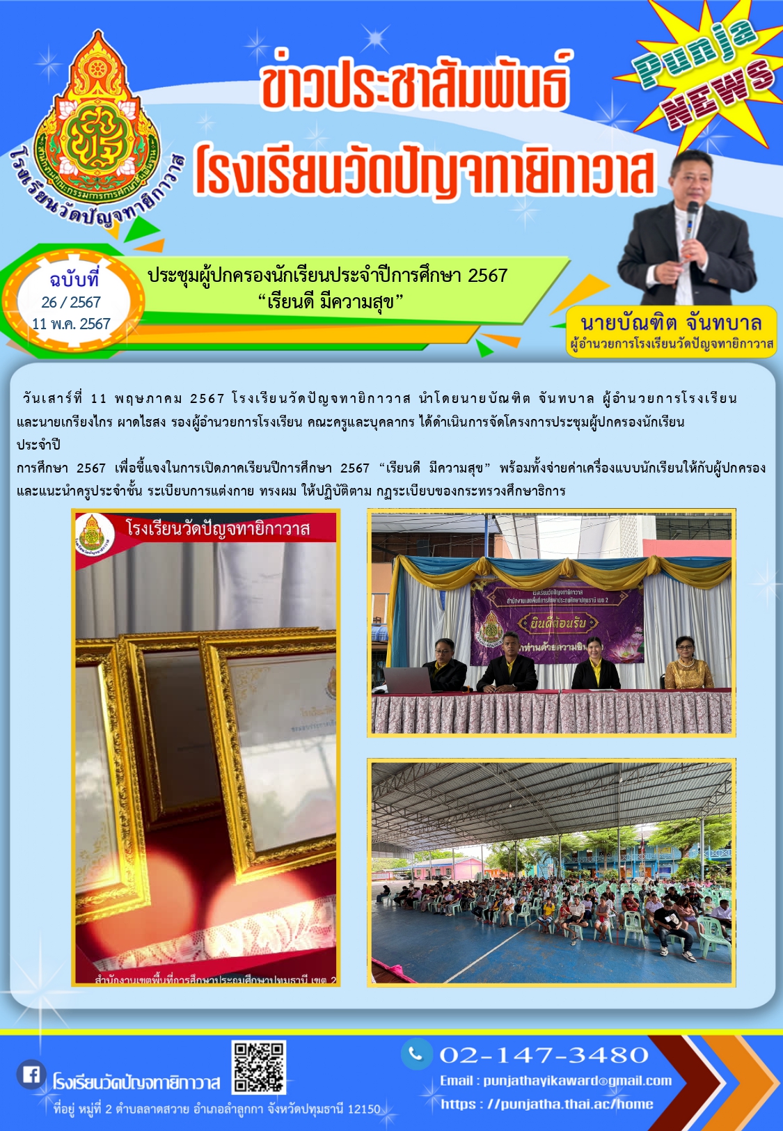 ประชุมผู้ปกครองนักเรียนประจำ ปีการศึกษา 2567 "เรียนดี มีความสุข"